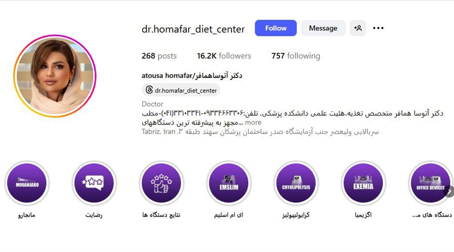- مجهز به دستگاههای لاغری موضعی در مطب
