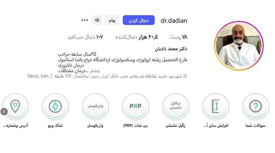 - آدرس: تبریز، خیابان آزادی، نرسیده به چهارراه مارالان، کلینیک شیخالرئیس